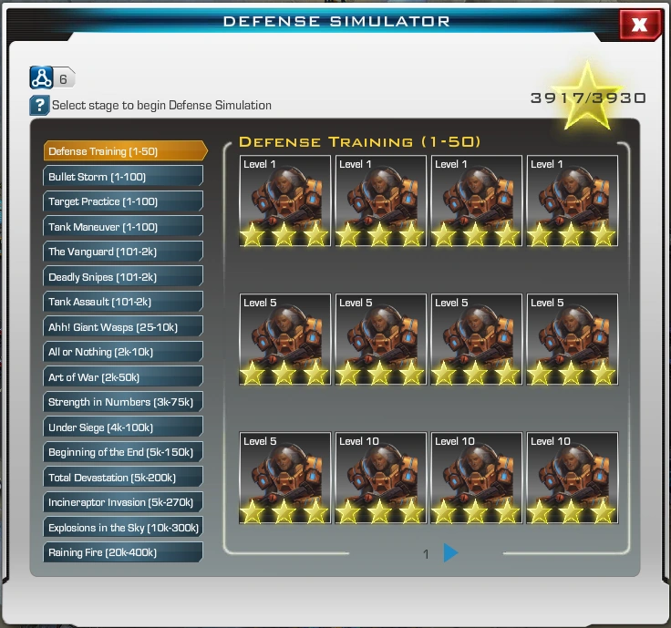 Each campaign has a number of individual attacks that can be initiated by using a charge of the Defense Simulator, which is similar to that of a Warp Gate, except that it has a faster recharge time of only 15 minutes and a 6 launches capacity.
